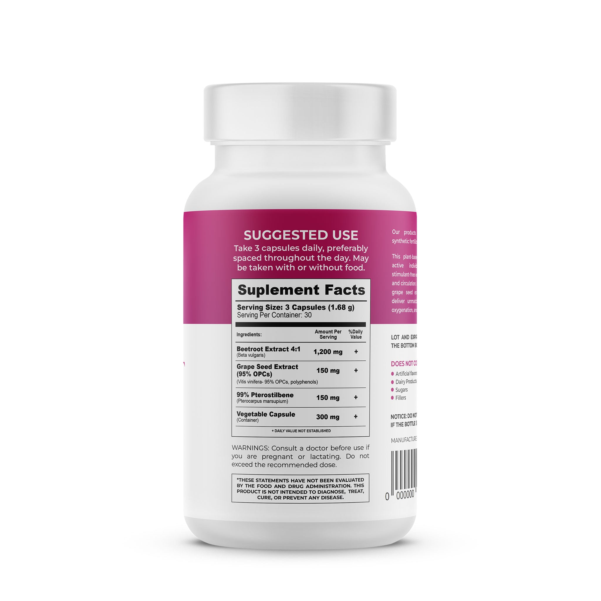 Beetroot Complex combines Beetroot Extract (4:1), Grape Seed Extract, and Pterostilbene to provide powerful antioxidant and anti-inflammatory benefits. This advanced formula supports cardiovascular and brain health, helps regulate blood sugar levels, and protects the body from oxidative damage. Ideal for promoting circulation, stamina, and overall vitality.