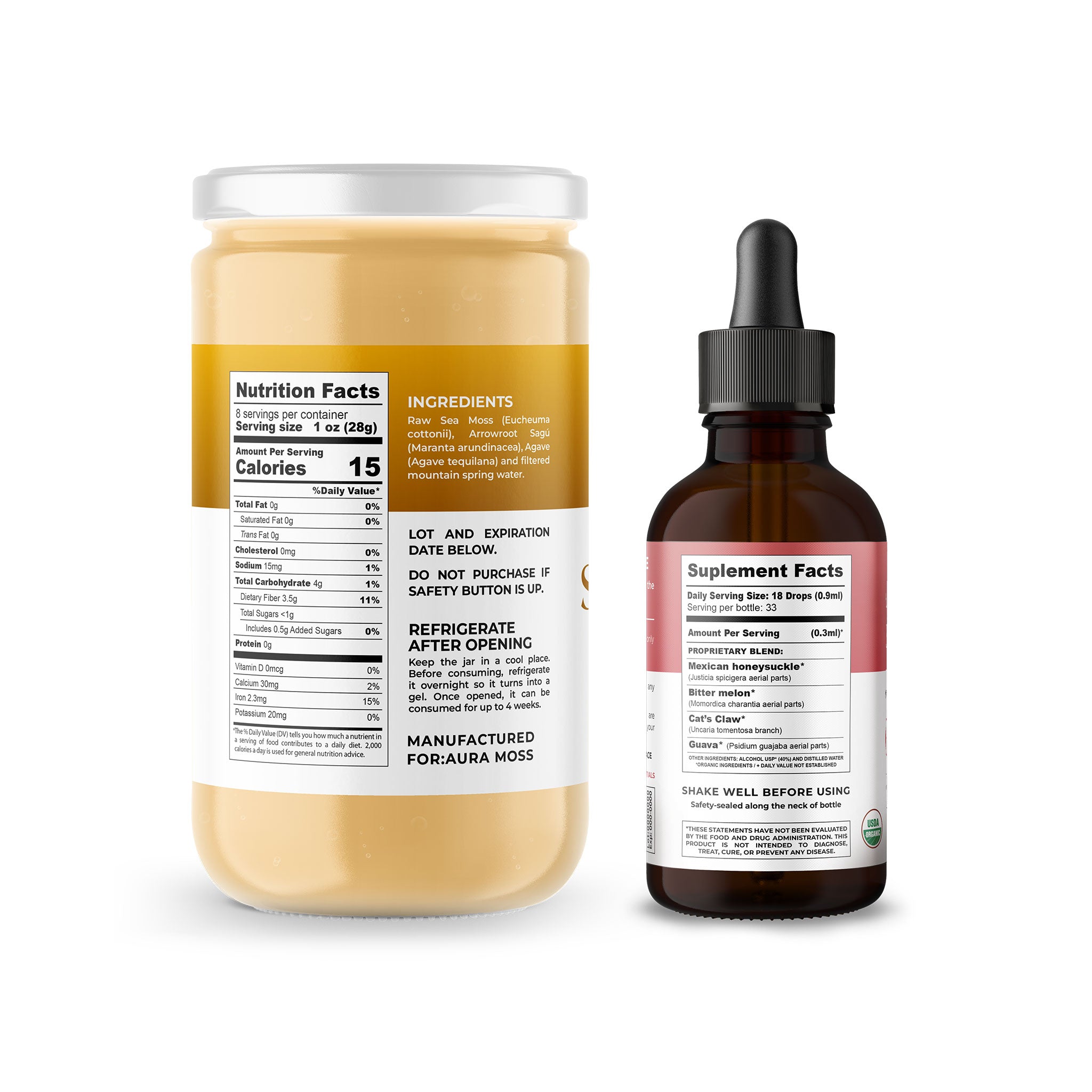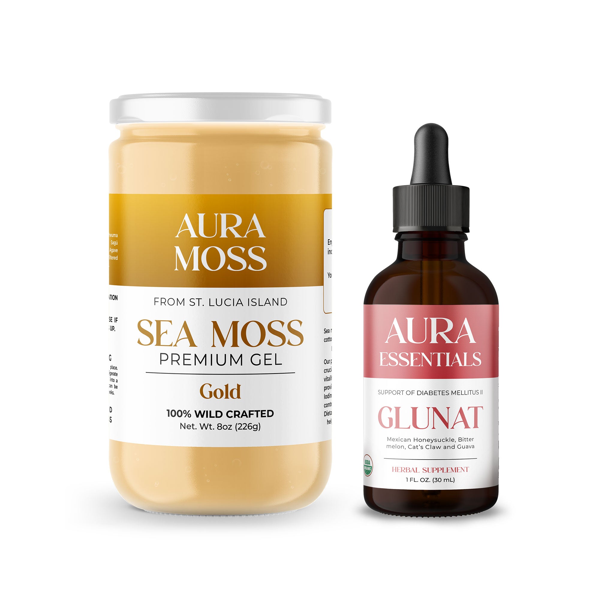 This package is designed to support daily metabolic wellness. It pairs the mineral-rich nourishment of Sea Moss Gel Gold with the herbal support of the Glunat Tincture, traditionally used to help maintain balance within the digestive and circulatory systems.